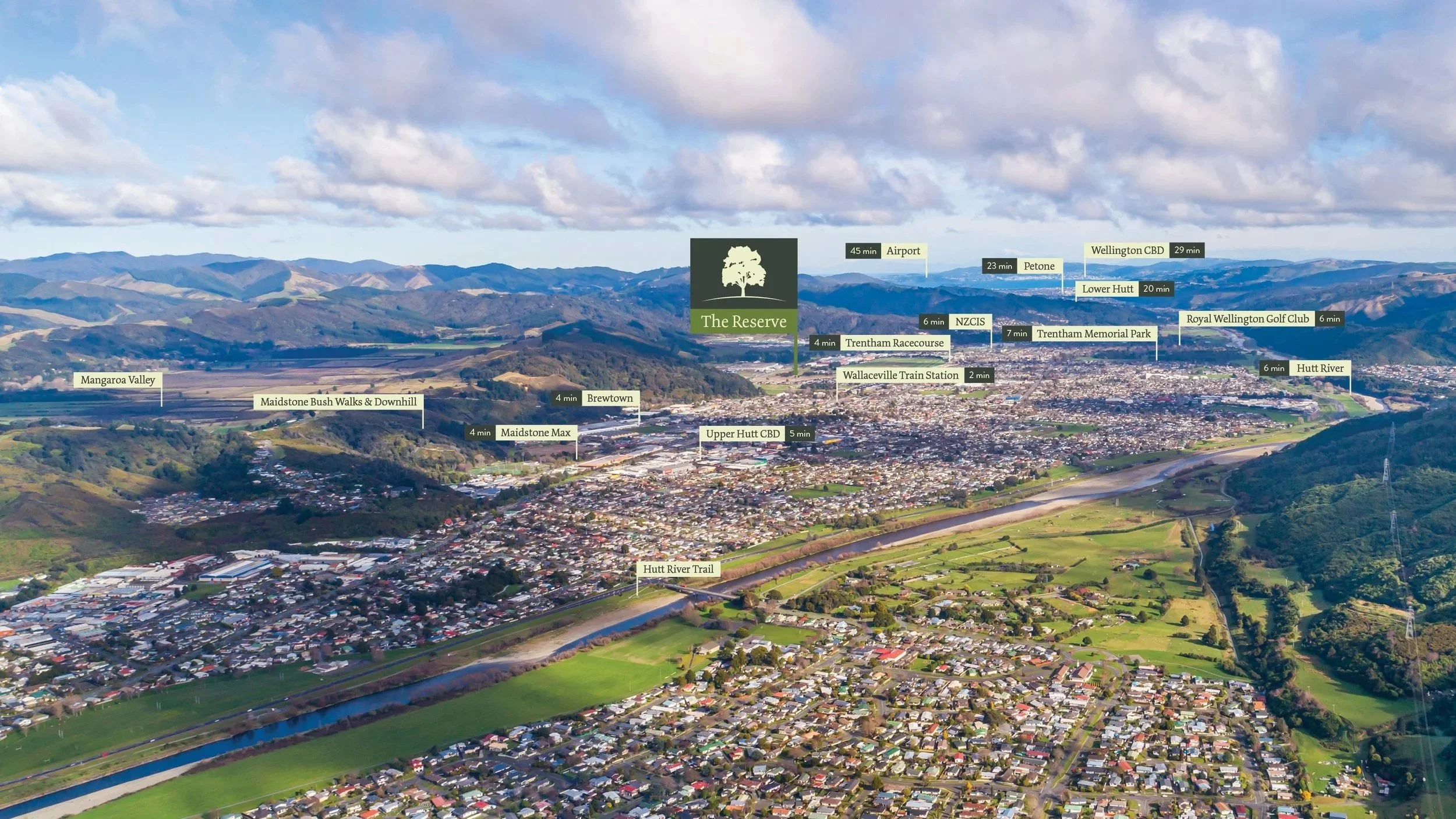 The Reserve takes its name from the conservation area set aside within Wallaceville Estate. This open green field, with scattered native trees, is an oasis of greenery and recreation within an urban environment.