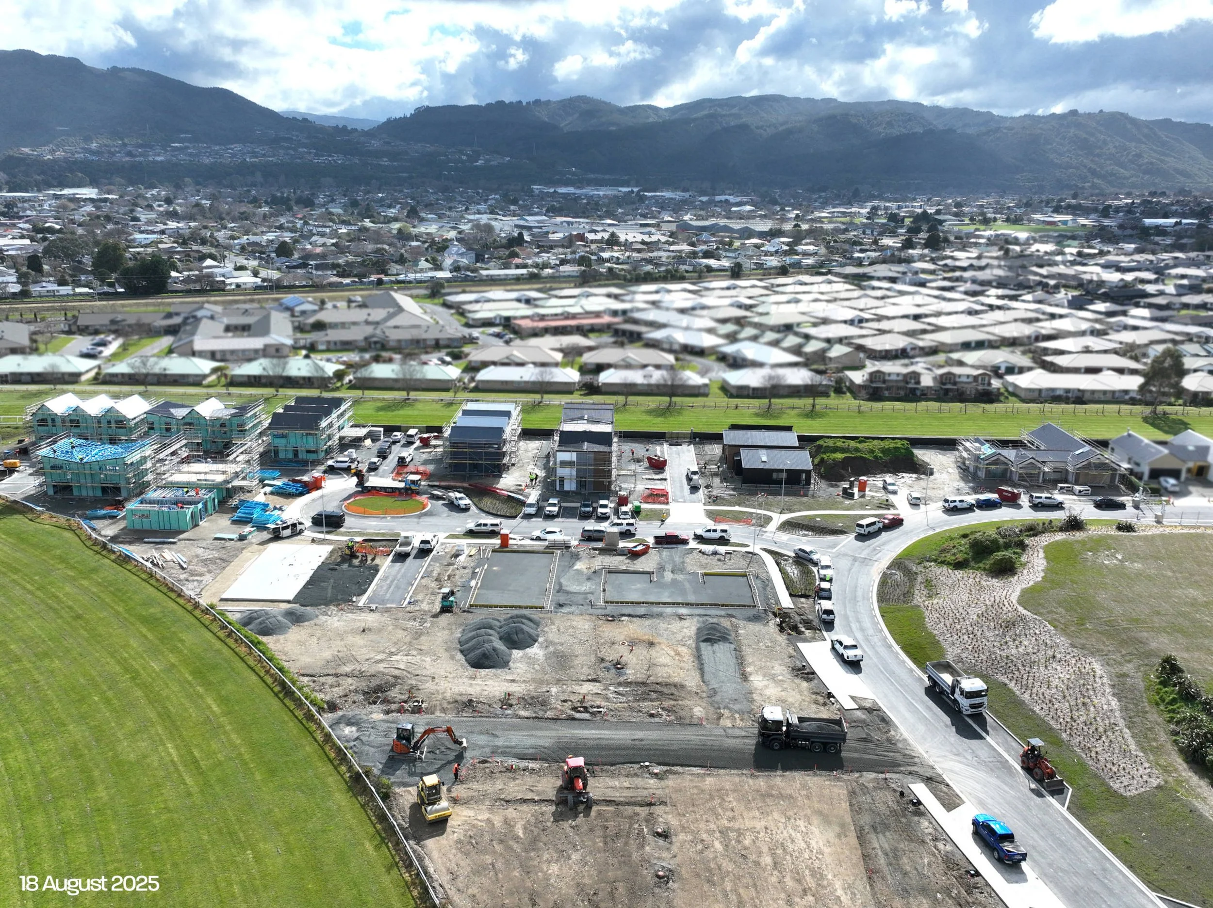 Follow the progress of the overall development as the foundations of the community take shape. This includes major works such as earthworks, roads, services, and the infrastructure that supports the neighbourhood as a whole.