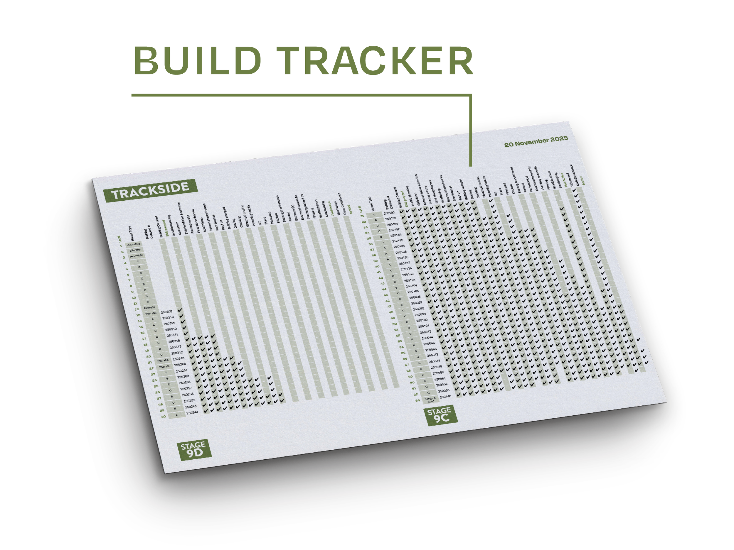 Progress is moving quickly at the Trackside development. The survey plan has been lodged with Land Information New Zealand, and the remaining documents to complete titles are expected shortly.